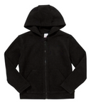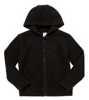 Plain Zip-Through Fleece With Hood - Black