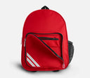 This practical school rucksack can be embroidered with your school emblem and features a zipped front compartment, reflective strip and two net side pockets for water bottles. The rucksack has a plastic name patch at the back, internal zipped pocket, carry handle and adjustable, padded shoulder straps for comfort.